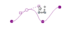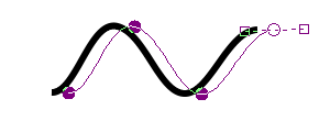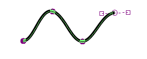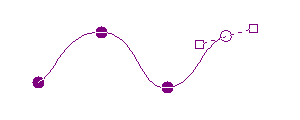 ドラッグした直後の点は□--○--□のようになっています。この□をさらにドラッグすることで曲線の曲がり方を変えることができます。次の通過点をクリックすることでこの点は□が隠れて●となり、次の通過点が□つきで表示されます。