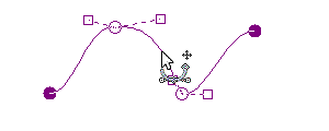 □をドラッグで動かすことで線の曲がり方を変えることができます。破線でつながっている通過点○(この時は白丸になっている)から離すと曲がりが急激になります。