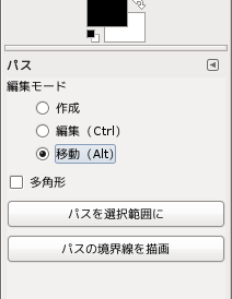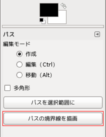 線を描いたり塗りつぶしたりした後も、パスは元のまま残ります。フォーカスが外れる(そのパスが注目されなくなる)とパスは見えなくなりますが、データは残っています。.xcf形式の画像ならファイルにも残ります。パスを移動して別の場所にもう一つ描いたり、パスを再編集して描き加えたり描き直したりということもできます。