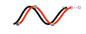 線の部分をドラッグすることでも曲がり方を調整することができます。これはその線分をはさむ両方の通過点の□を調整するのとおなじです。