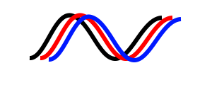 パスを移動して色を変えて描くと次のような曲線を描くこともできます。