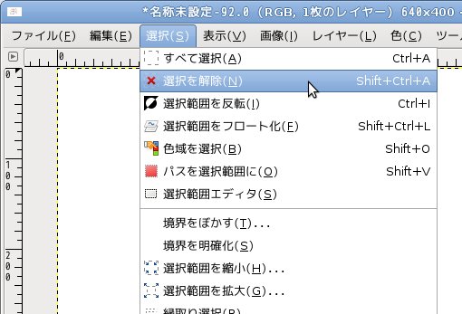 次の作業に進むために選択を解除します。これをしないと選択の外側を編集できません。
