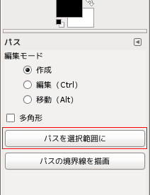 できたらツールオプションから「パスを選択範囲に」をクリックします。