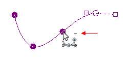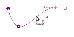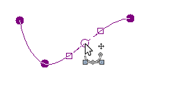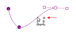 作ってすぐは、この点は他の点と同じく移動したり □のハンドルを操作して曲がり具合を調整できます。