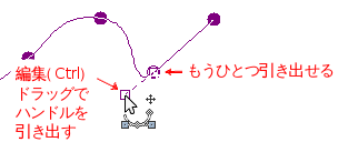 頂点に後からハンドルをつけたいときには、編集(Ctrl)の状態で頂点をドラッグすれば、□が現れます。
