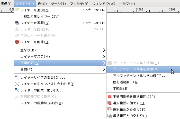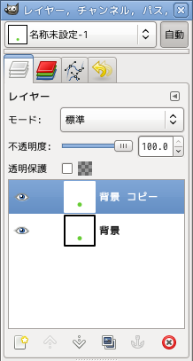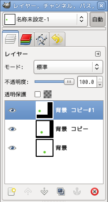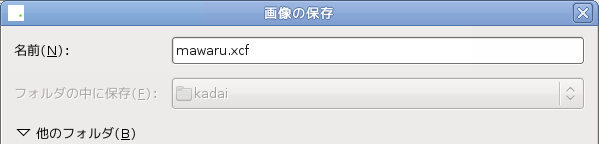 うまく動くようになったら保存します。まずxcfの形式で保存しましょう。xcfの形式ならばレイヤーの状態もそのまま保存できます。