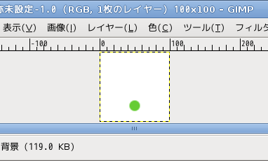 GIMPを使ってアニメーションをつくりなさい。画像の大きさは100×100ピクセルとする。