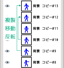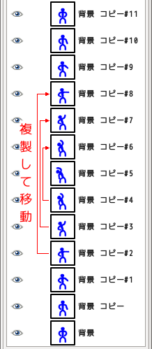 上になったレイヤーをさらに複製してずらすという作業を繰り返していきます。