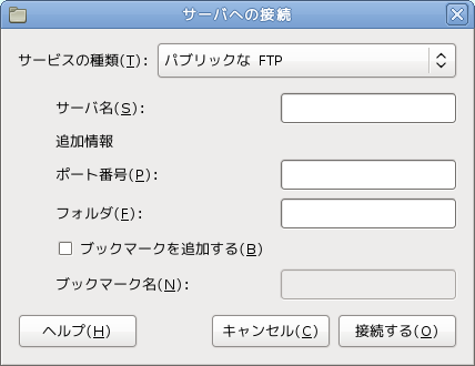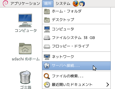 パネルの[場所]メニューから[サーバーへ接続]を選びます。