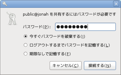パスワードを入れます。選択部分は3つのうち一番上に。