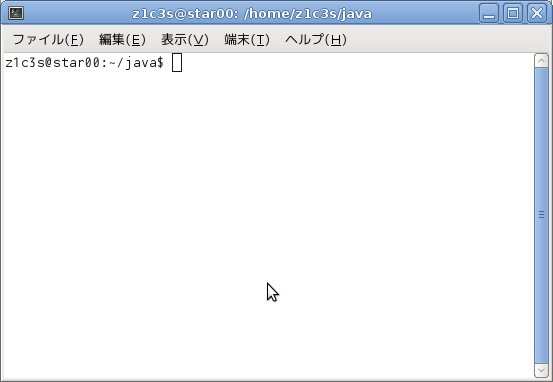 [アプリケーション]-[アクセサリ]-[端末]で出てくるものと同じですが,カレントディレクトリが java になっています。