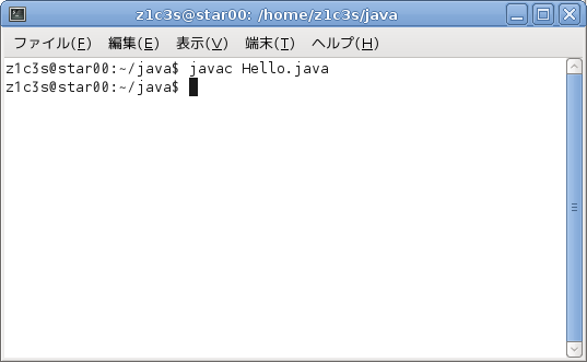 $ はプロンプトです。実際には z1c3s@star00:~/java$ などとなりますが、設定により変化しますのでこのテキストで書く時には $ だけにします。