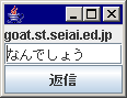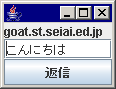 相手の Kitayo06 です。メッセージが来ました。「返信」をクリックするとCliant06が起動され自分は消えます。