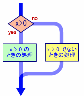 if ( x > 0 ){ x > 0 のときの処理; } else { x > 0 でないときの処理; }