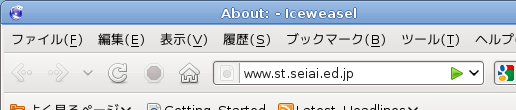 Iceweasl(Firefox)は「about:」というIceweasl(Firefox)の自己紹介のページになっています。