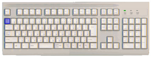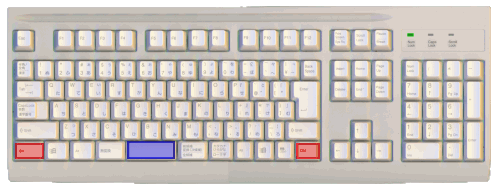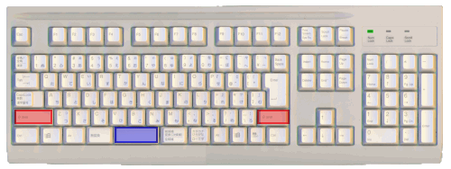 [Ctrl]は2つあります。図の赤のキーのどちらかを押しながら,青のキーを押します。