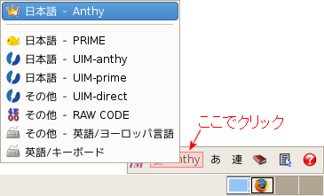 Anthyとなっていなければツールバーを左の方をクリックしてAnthyを選びます。