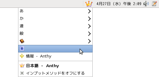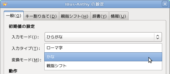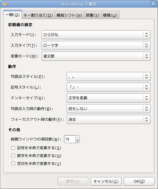 次のようなIBus-Anthyの設定パネルが出てきます。