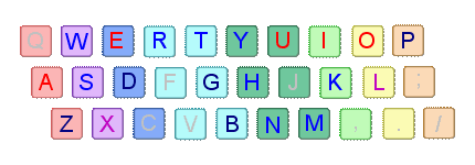 「入力練習(自習)」にある練習の総復習です。ほんとうはキーボードを見ないで入力する「タッチタイピング」の練習ですが、見ながらでもやっていれば慣れてきます。文字は覚えやすい順に並んでいます。ていねいにキーボードに教えてあげるつもりで入力します。