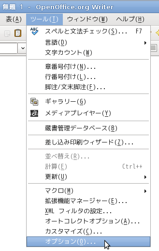 変更するにはメニューから[ツール]-[オプション]を選択して、