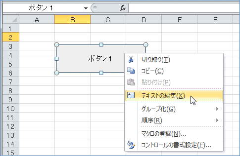 ボタンの文字を適当に変更して、ボタン以外のセルなどを選択すると下図のようになります。