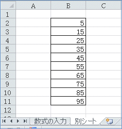 この「別シート!B2」の「!」の前がシート名を表します。