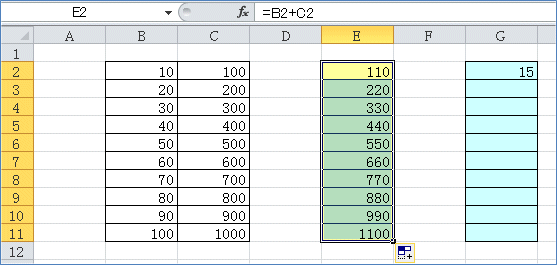 なりますから、その状態を作ってからオートフィルコピーします。