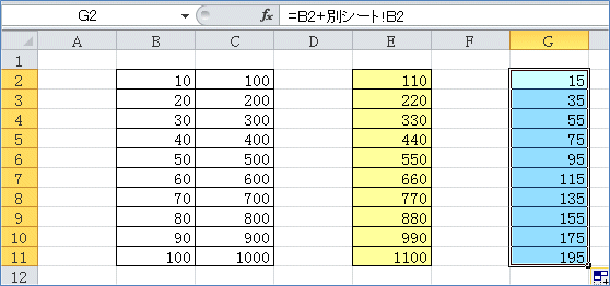 G2セルの式も同じようにオートフィルコピーできます。