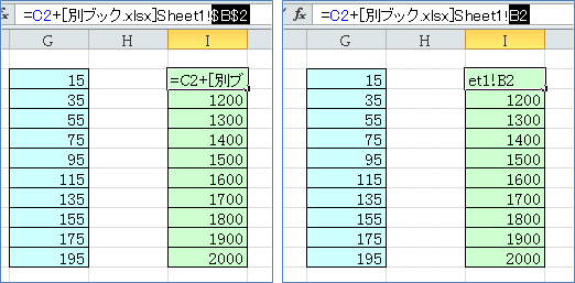 他ブックからのセル参照には自動的に絶対参照の$マークが入ります。