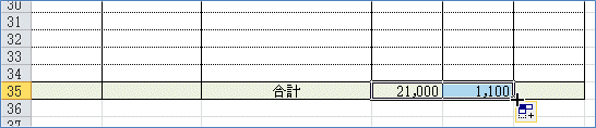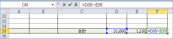 (2)D35の式を右へオートフィルしてE35セルにコピーします。