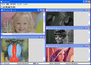 | フェイスは表情認識を主眼に開発している画像編集ソフトです。2006年3月頃まで継続する可能性があります。 ver1では画像編集ソフトとしての基本機能のみを実装しました。マルチドキュメントインターフェース、スライドバー(初)、ツールバー(初)、ステータスバー(初)、高画質拡大縮小(初)、クリップボードコピー&ペースト、ドロップファイル読み込み、などです。 他にも、(拡大縮小を考慮した)現在の座標、それに対応するRGB値、輝度値を常時ステータスバーに表示する機能も実装しました。 フィルターは輝度変換、明度変換のみを実装してみました。フィルターは逐次追加していきます。 |