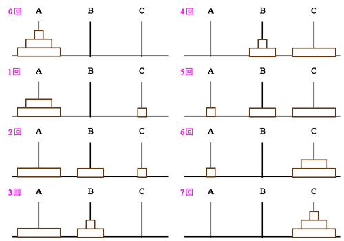 移動元をA棒、移動先をC棒、作業棒をB棒とすれば