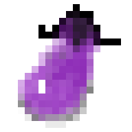 にんじんは27×27ピクセル,なすは18×18ピクセル,ピンは16×24ピクセル程度の大きさです。小さいので作るときも、ブラシの太さは1で、拡大して1点1点を考えながら塗りつぶすような作業になります。