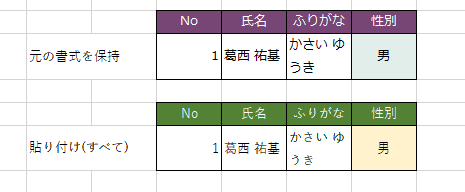 下図のように通常の貼り付け(すべて)と同じ結果のようですが、テーマが関係してきます。