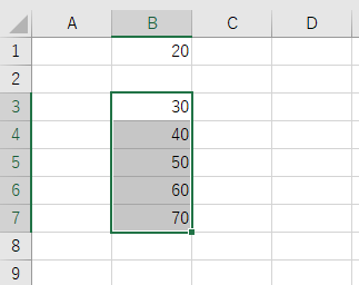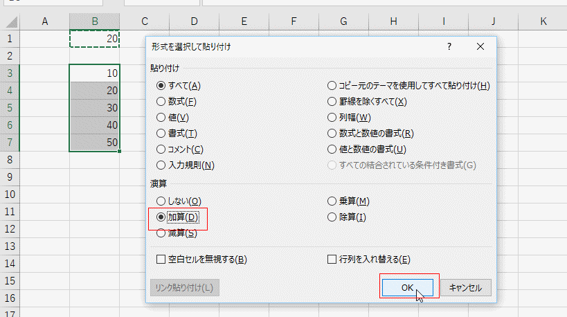 - 貼り付け先のデータに コピー元の20 が加算されました。