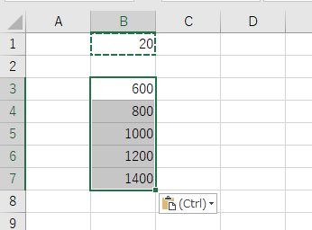 - 貼り付け先のデータに コピー元の20 が乗算されました。