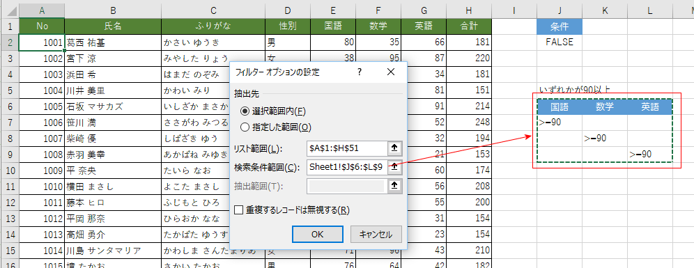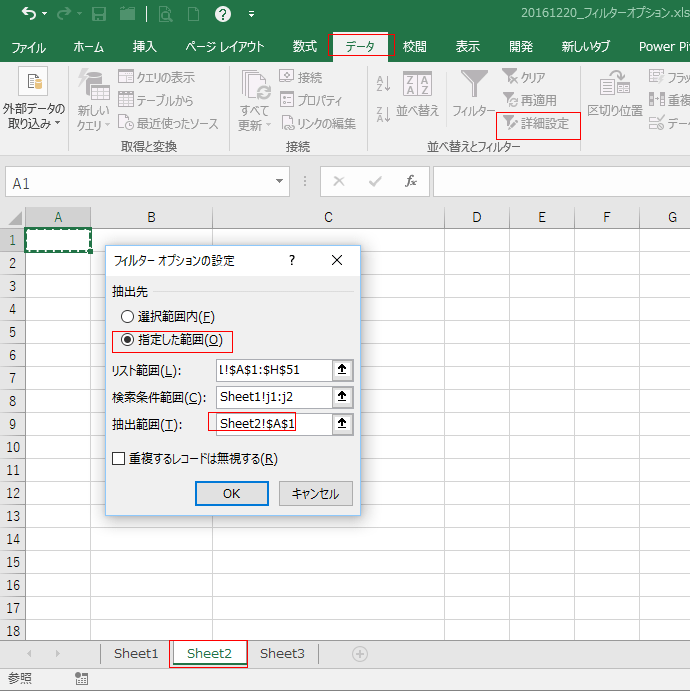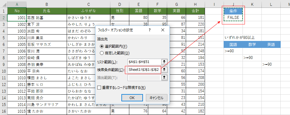 | 詳細設定で検索条件をシートに書き出す方法 | 詳細設定で検索条件を数式で書く方法 |