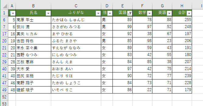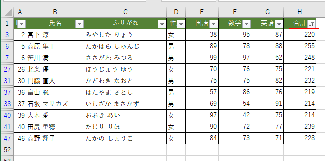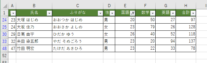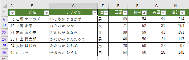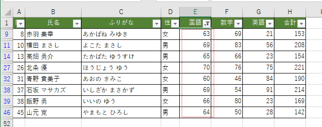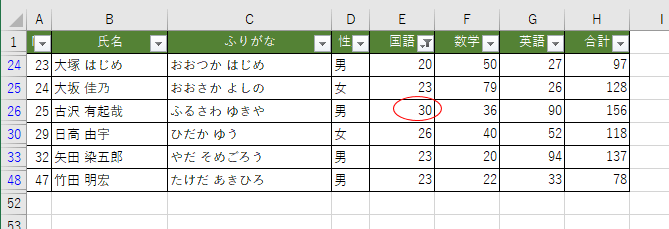 - 「平均より下」を選択すると、すぐにデータが抽出されます。