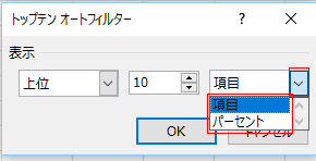 - 「トップテン」を選択すると、「上位」または「下位」を選択することができます。