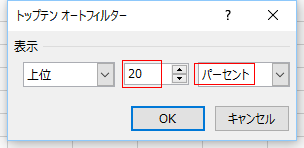 「上位」「20」「パーセント」に該当するデーターが抽出されます。