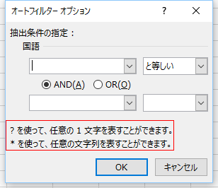 下の方に記載されているワイルドカード(?や*)の使い方はテキストフィルターでの使用方法になります。