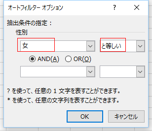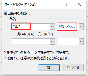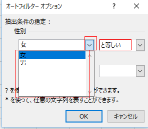 | 指定の値に等しい | 指定の値に等しくない |