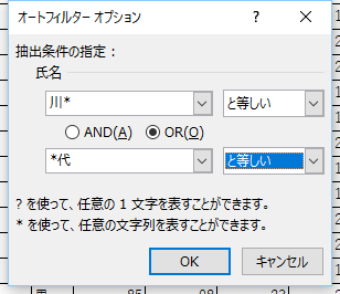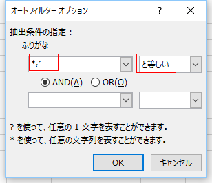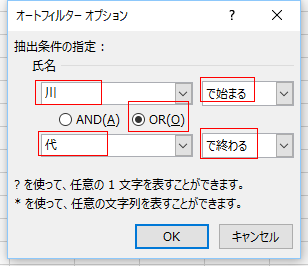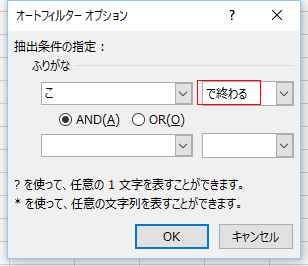 | 指定の値で始まる | 指定の値で終わる |