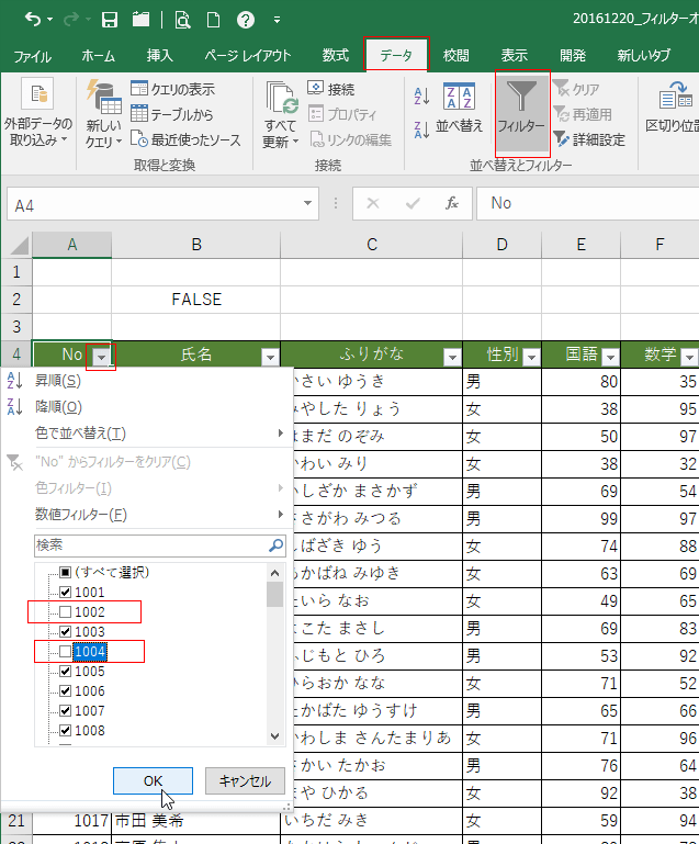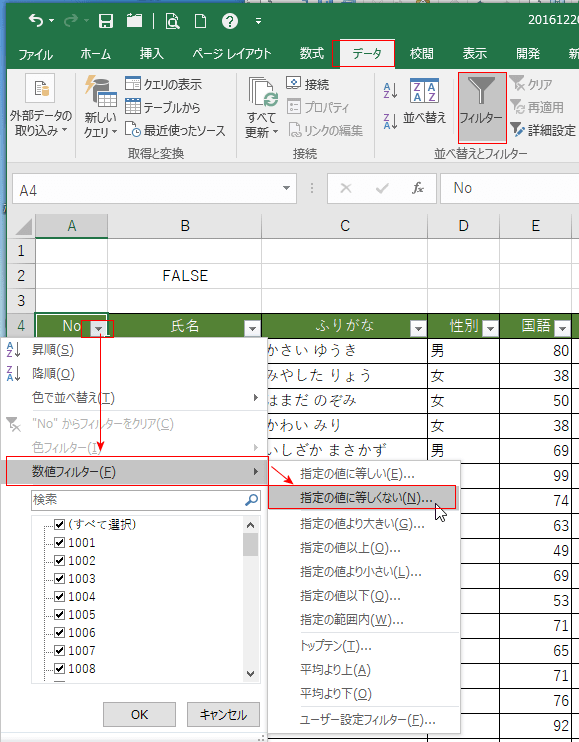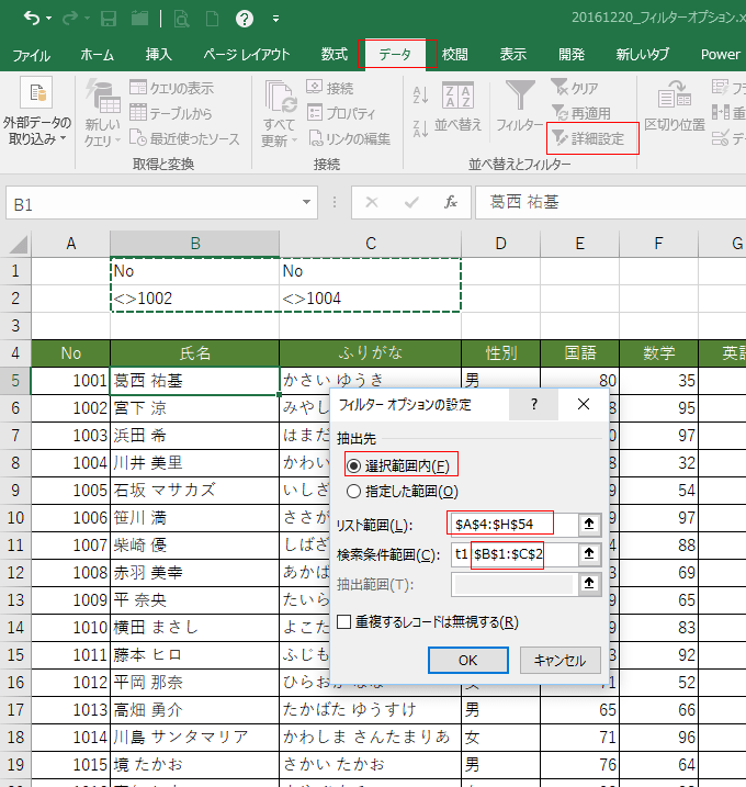 | オートフィルターで 〜以外のデータを抽出する | 詳細設定で 〜以外のデータを抽出する |