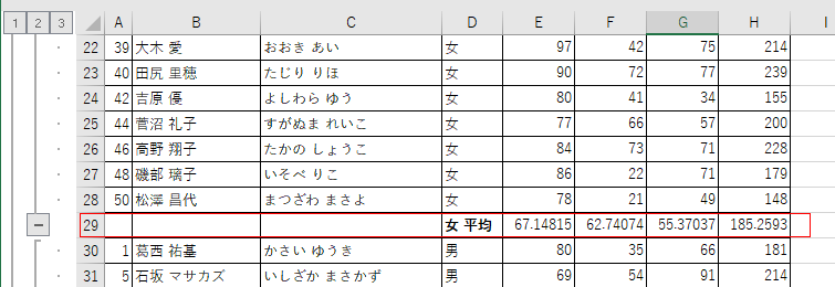 - 平均の行が挿入されました。
