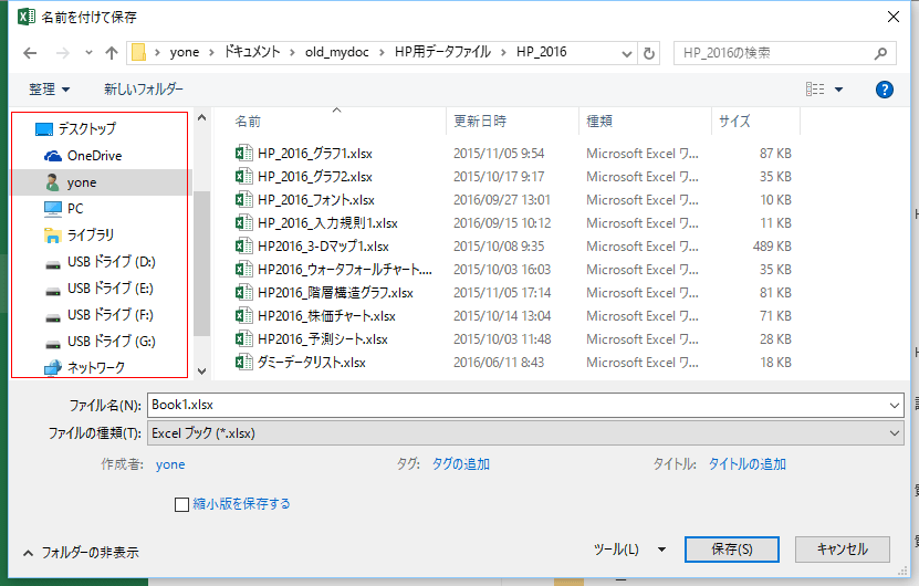 - 左の欄で保存する場所を指定して、所定のフォルダーまで開きます。