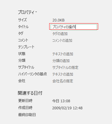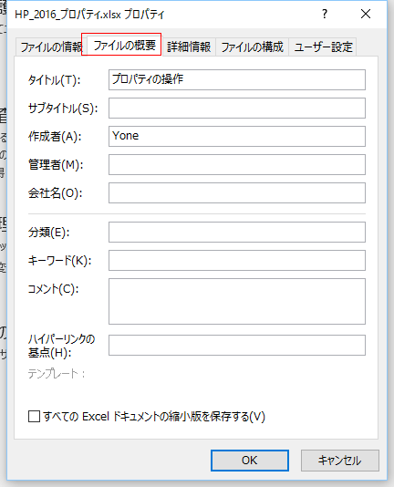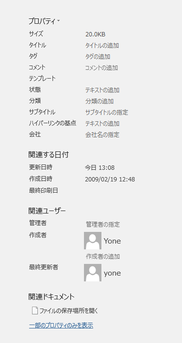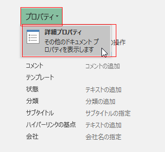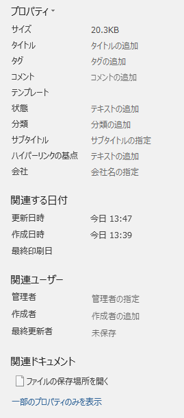 - ファイルをいったん保存した閉じた後に、開いてプロパティを確認します。