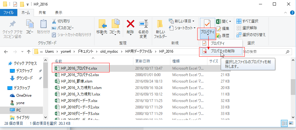 - OS(ここではWindows10を使っています) のエクスプローラーでプロパティを削除することもできます。