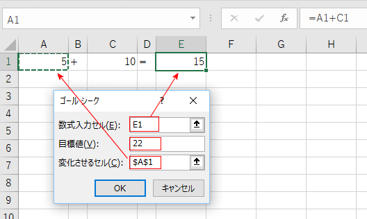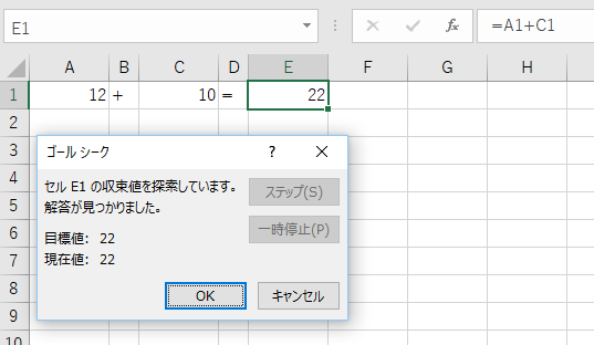 目標値とは計算結果をいくらにするかということになります、ここでは22としました。