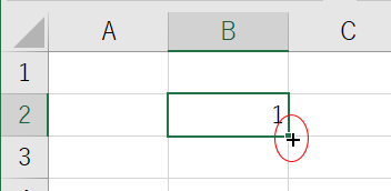 この状態でマウスをドラッグ操作することをオートフィルと呼びます。アクティブセルからの連続データの入力やコピーを入力することができます。